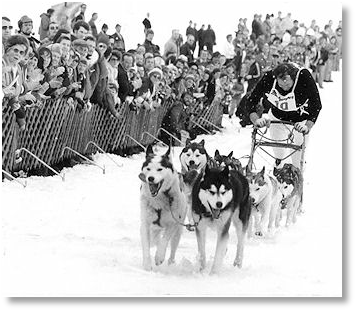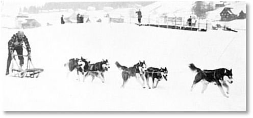 Joseph “Sepp” Felder (Switzerland) was one of the true pioneers of the sport and a very energetic and vital senior who participated in the Open Races without any problem. And with good success. This is the only picture I have of him. In his team were dogs bred by himself out of Thomas Althaus’ Kamchatka breeding stock (Monadnock). Sepp started out with Samoyeds but switched to Siberian Huskies for racing.
