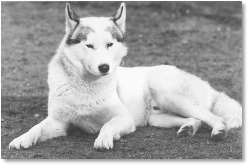 Silver had a beautiful face, excellent angulation and bone structure. He was an elegant dog, however, his coat left much to be desired - somewhat too loose in structure - but that is easily corrected in breeding. He was also a very fast team dog and very concentrated on his work.