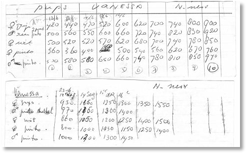 De combinatie van Silver en Vanessa gaf een heel grappig maar wel uniform nest van allemaal witte en pinto pups. Logisch natuurlijk met Astro aan vader en moeders kant. Het was een vorm van lijnteelt terug naar een uitnemend goede hond (Astro) welke Earl en Natalie Norris ook regelmatig toepasten in hun fokkerij, maar halfbroer halfzuster kon wat ons betreft in dit geval alleen omdat er zowel aan Silvers als Vanessas moederskant onverwante honden zaten.