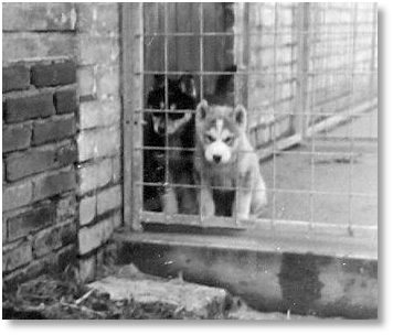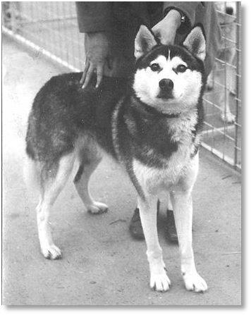 Wobask had inherited many of the Seppala qualities of his Sire (Alaskan’s White Fox of Anadyr), especially his coat-structure and extremely friendly and sound temperament. These qualities we already found in our W-litter and confirmed themselves in Wobask’s litters. They had nice cheeky faces, and this can sometimes get lost in the breed - some Siberian Husky faces tend to get pointed. In Wobask himself we maintained - all credit to his dam Alaskan’s Sascha of Anadyr - good Anadyr conformation (shoulder- and rear-angulation, ranginess), but then Spot was himself half Anadyr. It was a pity we only got one pup, Solo, out of this combination. Solo turned out to be good in conformation himself and a hard worker who, once he went as an adult and proven sled-dog to Kjell & Bodil Sulebakk (Stanowoi’s Kennels), did well in their team and in breeding.
