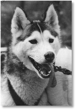 Green Beret’s Snowy Babbet (dam) was our litter choice from the breeding combination Nancy van Gelderen-Parker (Green Beret Kennels) made between her Keelack of Kossa and our Ch. Alaskan’s Babiche of Anadyr. Babbet was a nice rangy, well-angulated, evenly-built dog with the beautiful face of her sire. Nancy really wanted to have Babbet back, so eventually we let her go in exchange of a pup out of her at a later stage. Nancy bred some very nice litters out off her and I believe showed her to her Champions title. She ran for many years in Leo v.Groenewegen’s (Naoyak Kennel) race team.